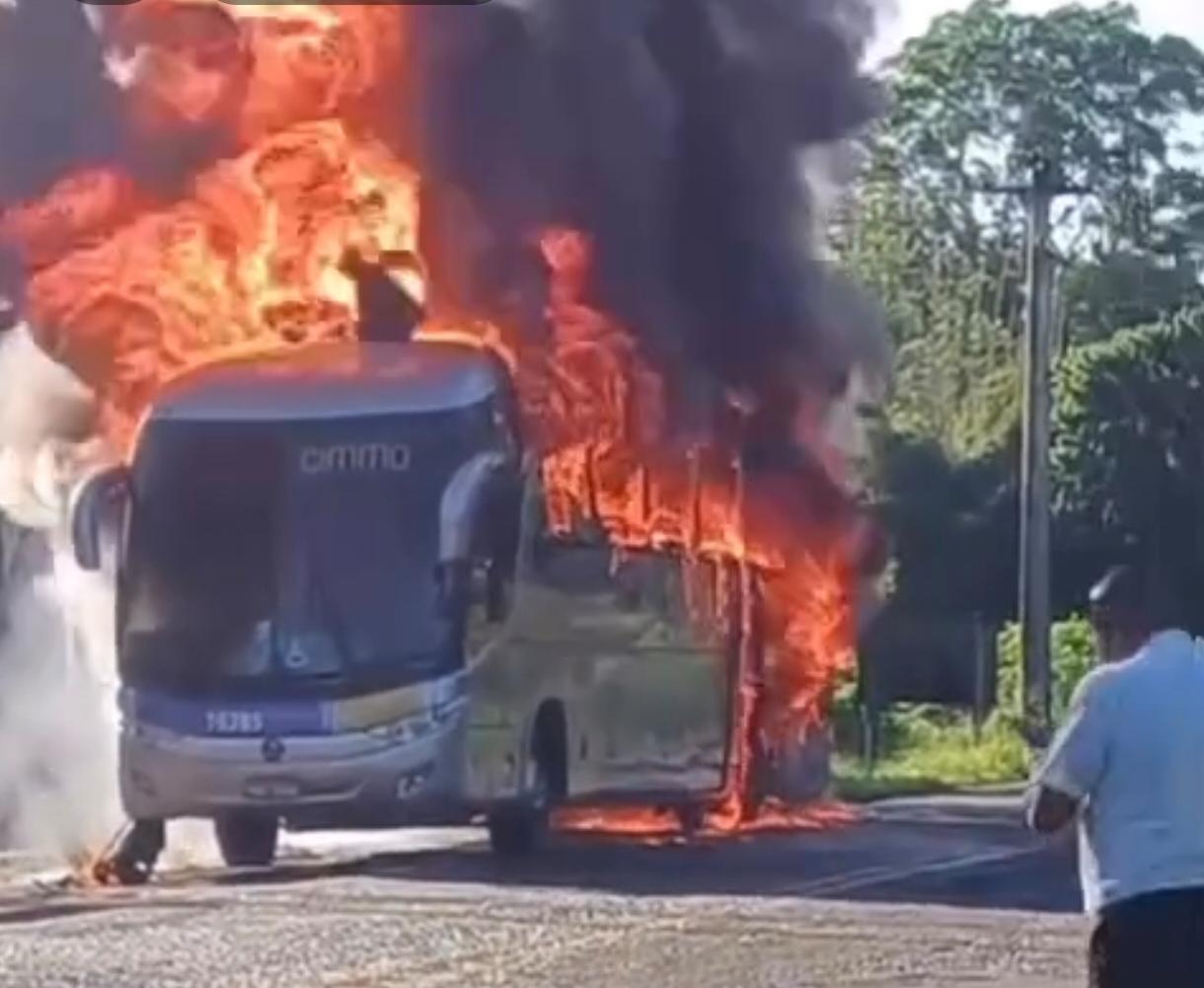 Rota Transportes confirma princípio de incêndio em ônibus na BA-262 e diz que não houve feridos