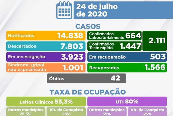 Conquista registra 2.111 casos confirmados de Covid-19 e 42 óbitos