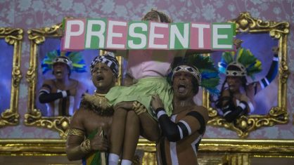 Outra menção a Marielle era feita na comissão de frente, que virava a história oficial pelo avesso: figuras históricas tradicionalmente reconhecidas, representadas como anões, eram substituídas por índios e negros. Na encenação, as novas personalidades erguiam uma menina que, representando Marielle, empunhava uma faixa onde se lia “presente”. O coro de “Marielle: presente” é uma forma frequente de homenagear a vereadora morta.