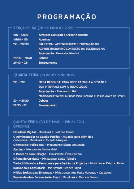 De acordo com a Coordenadora do Curso de Administração da FTC, professora Eliane Assunção, essa edição do PraxisADM irá abordar a formação do administrador e o papel da Administração no contexto da Sociedade 4.0; propondo aproximar os alunos de uma reflexão crítica sobre o papel da gestão na sociedade, bem como do domínio das suas técnicas e ferramentas. “Nossa proposta é oferecer oficinas e atividades que agreguem conhecimentos teóricos, críticos e práticos relacionados às áreas de atuação do administrador e que complementem a formação dada em sala de aula”, salienta Eliane.