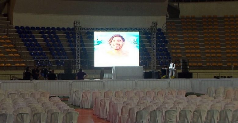 Corpo de Gabriel Diniz chegou ao ginásio Ronaldão em João Pessoa ainda de madrugada — Foto: Reprodução/TV Cabo Branco