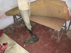 Imagens demonstram que o local para banho se tratava de pequena bica com balde e panelas, utilizadas para o asseio, bem como que a carne usada para alimentação era pendurada no varal por ausência de local adequado para refrigeração. Além disso, vê-se camas improvisadas utilizadas pelos trabalhadores, uma delas ao lado de comida que seria oferecida às galinhas.