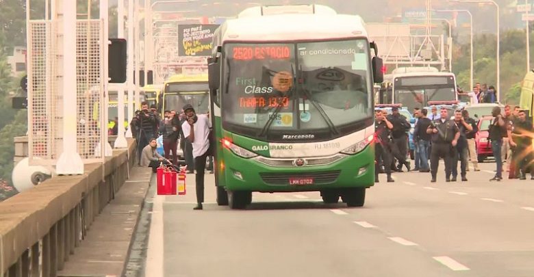 Um homem armado e com gasolina faz reféns dentro de um ônibus na Ponte Rio-Niterói desde as 6h desta terça-feira (20). A Polícia Rodoviária Federal estimava às 7h40 que havia 18 pessoas reféns – quatro já foram soltos.