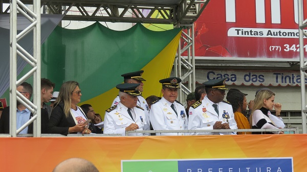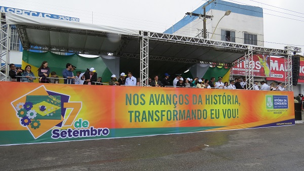 O prefeito de Vitória da Conquista, Herzem Gusmão (PMDB), assistiu o desfile do início ao fim, cumprimentando as pessoas que se aproximavam do palanque oficial do governo. Junto com ele estavam grande parte do seu corpo de secretariado, como o secretário de Educação, Coronel Esmeraldino Correia, secretaria responsável por toda a organização do evento. Além do secretariado do prefeito, vereadores da situação também se fizeram presente, como o presidente da Câmara Municipal, Luciano Gomes, e os vereadores, Edivaldo Ferreira Júnior (PMDB), Lúcia Rocha (DEM) e Luís Carlos Dudé (PTB).