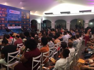 O segundo dia da 9ª edição da Festa Literária Internacional de Cachoeira, nesta sexta-feira (25), recebeu os escritores juvenis Thalita Rebouças e Saulo Dourado. Com uma plateia lotada de jovens e crianças, os autores levantaram o debate “A leitura não precisa ser essa coisa chata”.