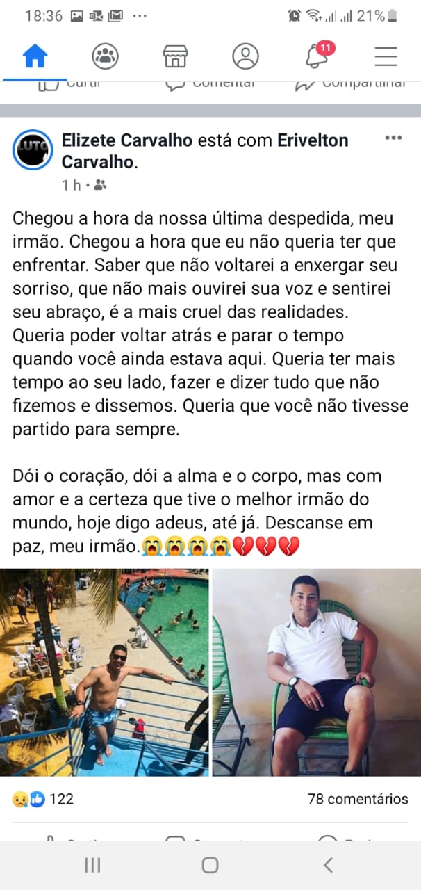 Muitas mensagens foram postadas em redes sociais em homenagem a Erivelton por amigos e familiares.