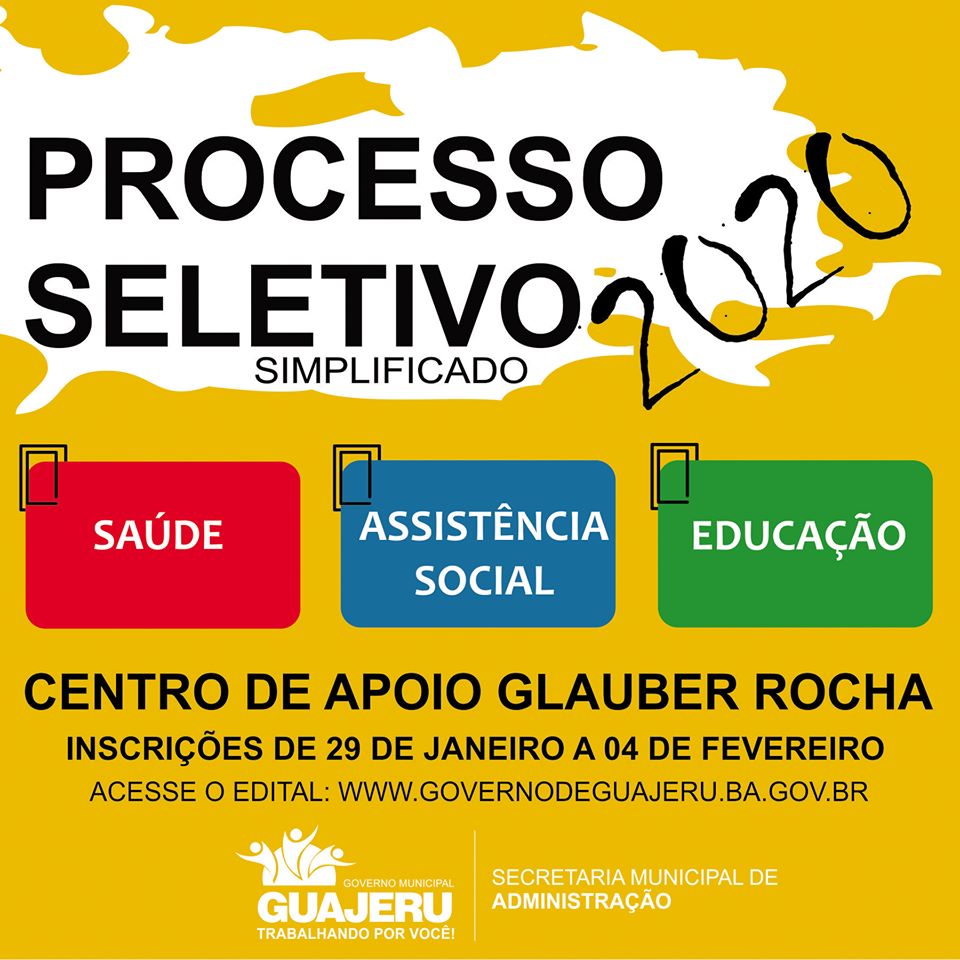 Teve início na última quarta-feira (29) as inscrições para o Processo Seletivo Simplificado nº001/2020 que será realizado pela Prefeitura Municipal de Guajeru. Os interessados em ocupar uma das vagas disponíveis poderão se inscrever até o dia 04 de fevereiro (terça-feira).