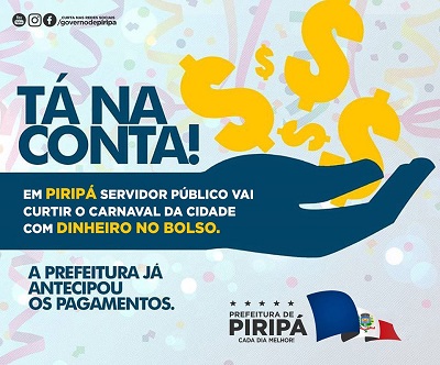 Na véspera do Carnaval da cidade, Prefeitura de Piripá efetua pagamento do mês de fevereiro aos servidores municipais