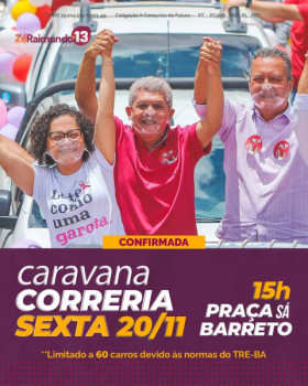 “Vamos realizar um ato seguro para a saúde de todos e respeitando as normas do TRE-BA, com a limitação de 60 carros”, informou Zé Raimundo em suas redes sociais.