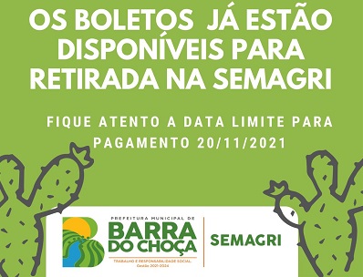 Os boletos já estão disponíveis para retirada na Secretaria Municipal do Meio Ambiente, Agricultura e Desenvolvimento Econômico (Semagri).