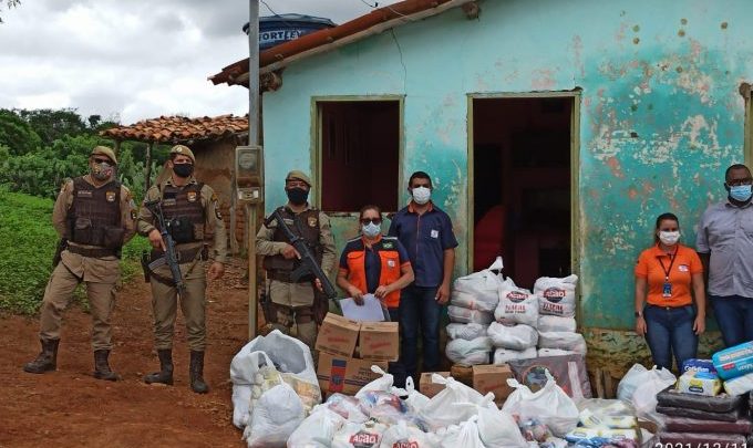 Conquista: Em ação conjunta, Prefeitura e PM entregam alimentos, cobertores e produtos de higiene às famílias do povoado de Boa Sorte
