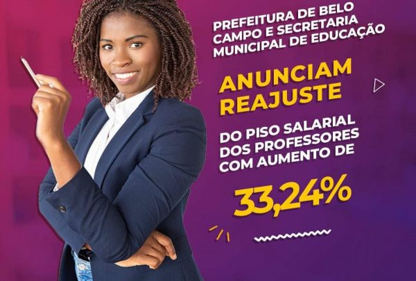 A Prefeitura de Belo Campo e a Secretaria Municipal de Educação anunciam o reajuste do Piso Salarial dos Professores com aumento de 33,24%. O projeto de lei que autoriza o reajuste foi apresentado à Câmara de Vereadores e será votado na próxima sexta-feira.