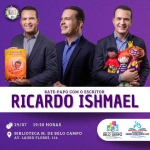 Que tal bater um papo com Ricardo Ishmael na FLIGBELÔ? Ele é escritor e jornalista na Rede Bahia de Televisão (Salvador). Possui Bacharelado em Comunicação Social com habilitação em jornalismo. Dentre outras abordagens, suas obras infantojuvenis ajudam a tratar o bullying sob a perspectiva do racismo.