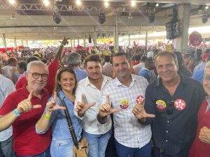 Na convenção que homologou a candidatura de Jerônimo Rodrigues à sucessão do governador Rui Costa, realizada neste sábado, 30, no Parque de Exposições, em Salvador, os deputados Waldenor Pereira e Zé Raimundo avaliaram a força política demonstrada para o pontapé inicial da disputa eleitoral. Candidato do PT, Jerônimo vai contar com uma coligação de oito partidos: PT, PSD, MBD, PSB, PC do B, PV, Avante e Patriota.