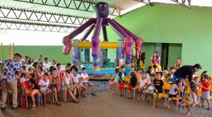 A semana em comemoração ao Dia das Crianças foi bastante agitada em Guajeru. A Prefeitura Municipal, através das Secretarias de Desenvolvimento Social e de Educação, levou, durante os dias 11 e 14 de outubro, para as unidades escolares de Educação Infantil e Fundamental Nivel I, uma grande estrutura de brinquedoteca móvel; pula-pula, escorregador, piscina de bolinhas, entre outros brinquedos, além de entregar brinquedos e guloseimas para a criançada.