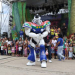 Mas, segundo a avaliação da criançada, a grande estrela do Festival foi, sem dúvida, o Robozão. Feito em fibra, com 2,40m e pesando cerca de 100kg, o dançarino foi ao palco rodeado por uma multidão de crianças que ansiava para vê-lo.