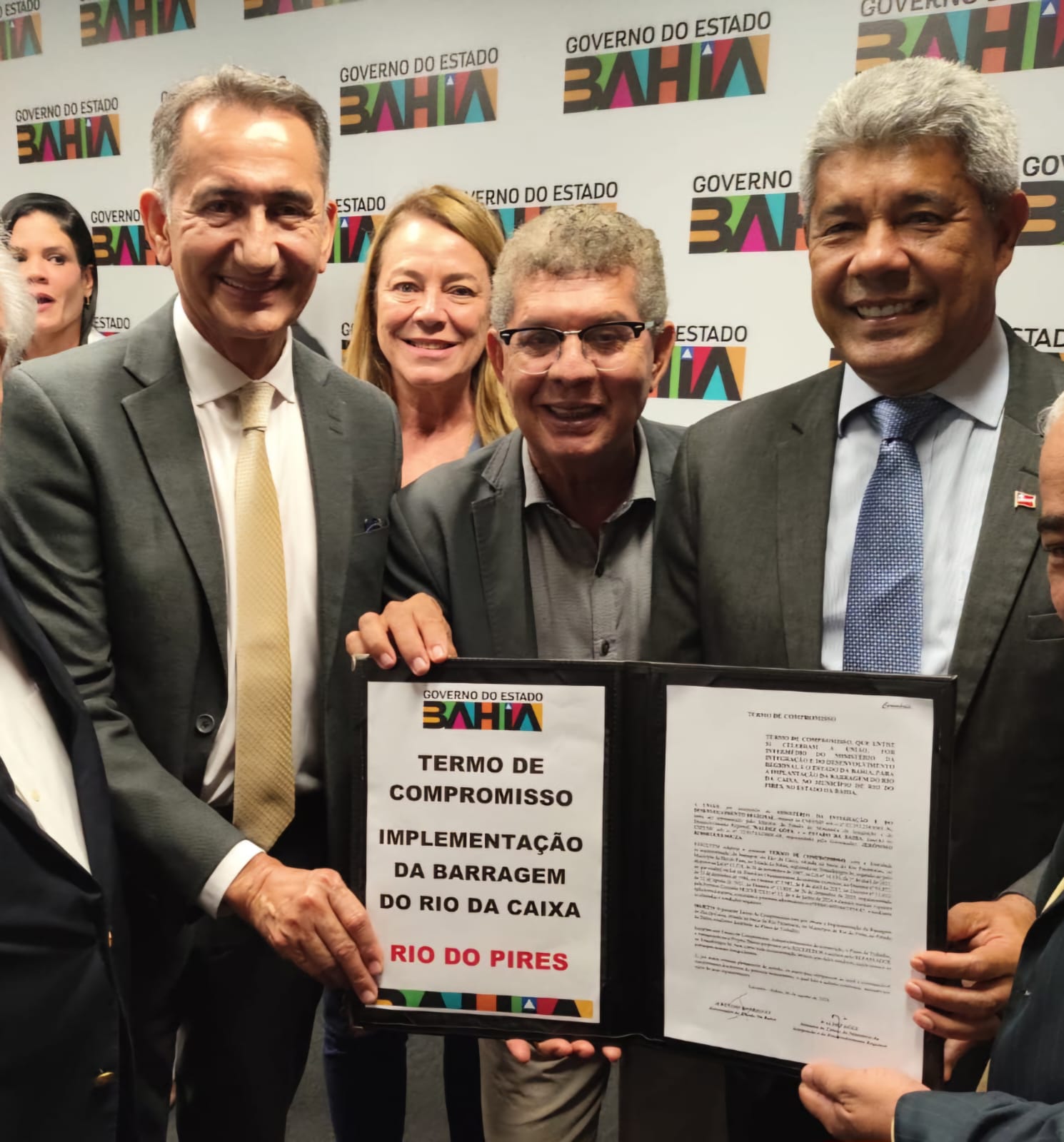 Termos de autorização para as obras de construção das barragens de Morrinhos, no Rio Gavião (imediações de Condeúba, Cordeiros, Piripá e Jânio Quadros) e do Rio do Caixa, no Vale do Paramirim, foram assinados nesta terça-feira (06/08) pelo governador da Bahia, Jerônimo Rodrigues, e o ministro da Integração Regional, Waldez Góes.