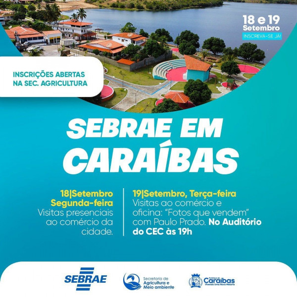 A equipe do SEBRAE estará em Caraíbas na próxima semana.