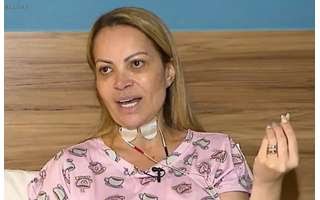 Ainda na entrevista, Solange Almeida apareceu acompanhada de um profissional e com um aparelho na garganta para cuidar das cordas vocais. A cantora também revelou que o tratamento de fonoterapia é realizado antes das apresentações artísticas.