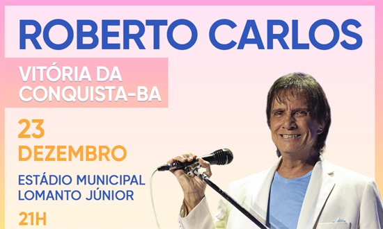 Artista que dispensa apresentação, o ídolo da canção latino-americana se apresenta em Vitória da Conquista – BA no dia 23 de dezembro de 2023 (sábado) às 21h, no ESTÁDIO MUNICIPAL LOMANTO JÚNIOR (Av. Luís Eduardo Magalhães – Candeias, Vitória da Conquista – BA). Abertura das vendas on-line (www.bilheteriavirtual.com.br) e física no dia 10 de novembro ao meio dia.