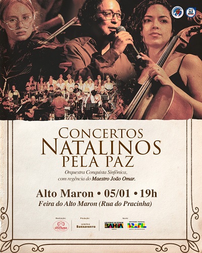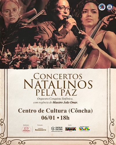 A série de “Concertos Natalinos pela Paz” começou em dezembro passado e é uma realização do Instituto Incluso, com produção do Coletivo Barravento e apoio do Governo da Bahia, por meio da Superintendência de Fomento ao Turismo, SUFOTUR; e conta com investimento de recursos de emendas parlamentares dos deputados Waldenor Pereira (federal) e Zé Raimundo (estadual).