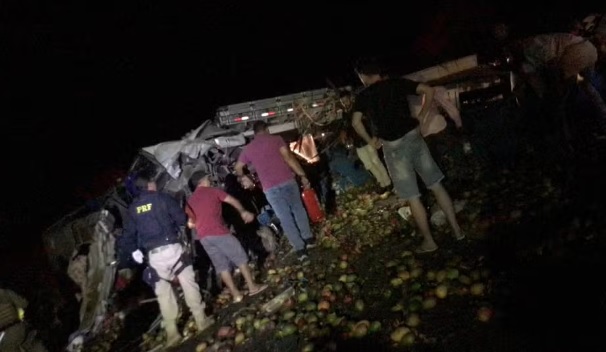 Ainda não há informações sobre o que causou a batida. O caminhão transportava mangas.