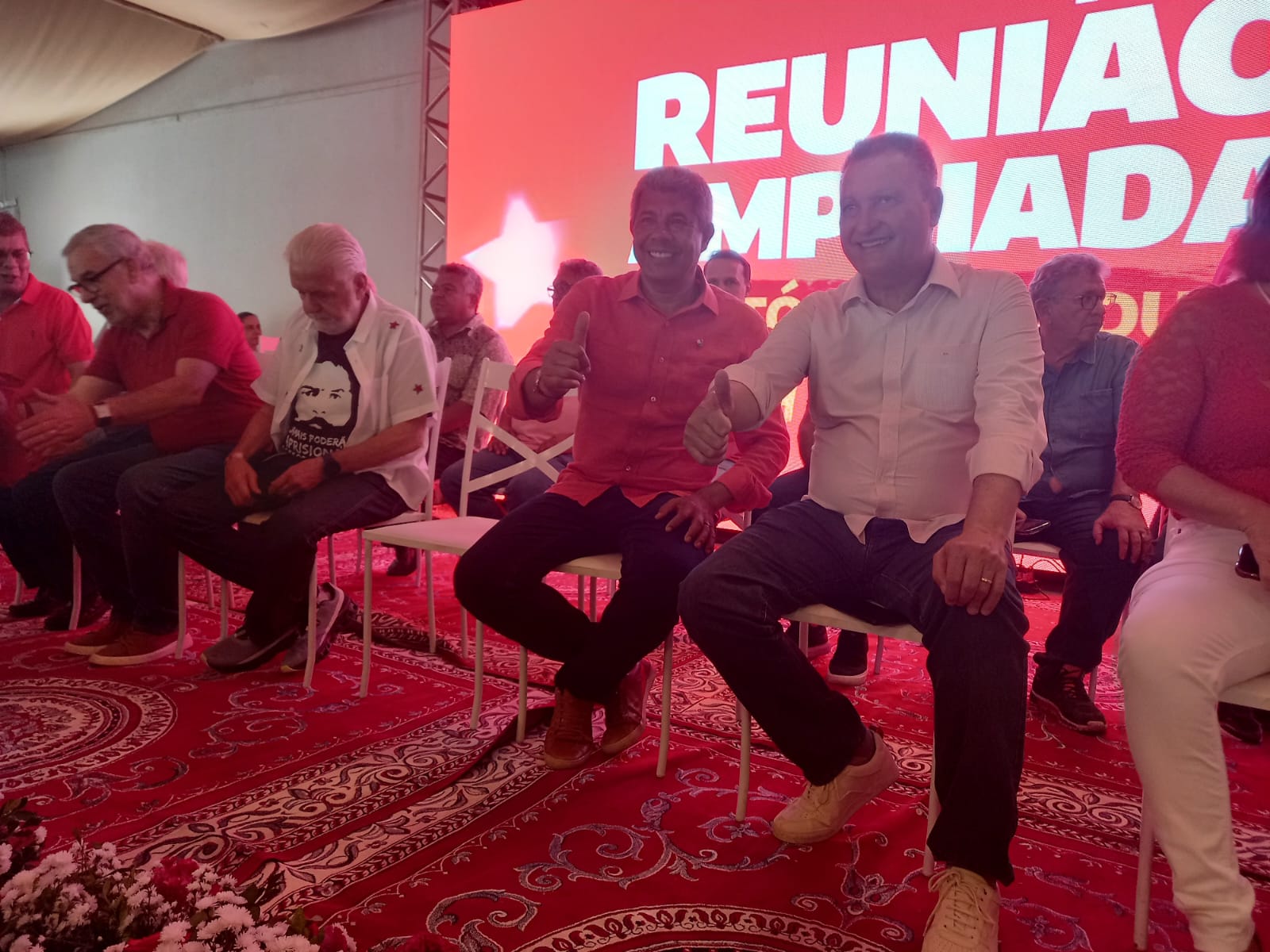 A reunião contou com as presenças do governador Jerônimo Rodrigues; do Ministro da Casa Civil, Rui Costa; do Senador, Jaques Wagner; do presidente estadual do PT, Éden Valadares; do deputado federal e pré-candidato à Prefeitura de Vitória da Conquista, Waldenor Pereira; o presidente do PT Conquista, Isaac; o deputado estadual Zé Raimundo; o ex-prefeito Guilherme Menezes, além de demais deputados federais e estaduais, secretários do Estado da Bahia, representantes de mais de 100 cidades e de mais de 20 territórios de identidade, representantes de movimentos sociais, partidos aliados e membros do Diretório e da militância.