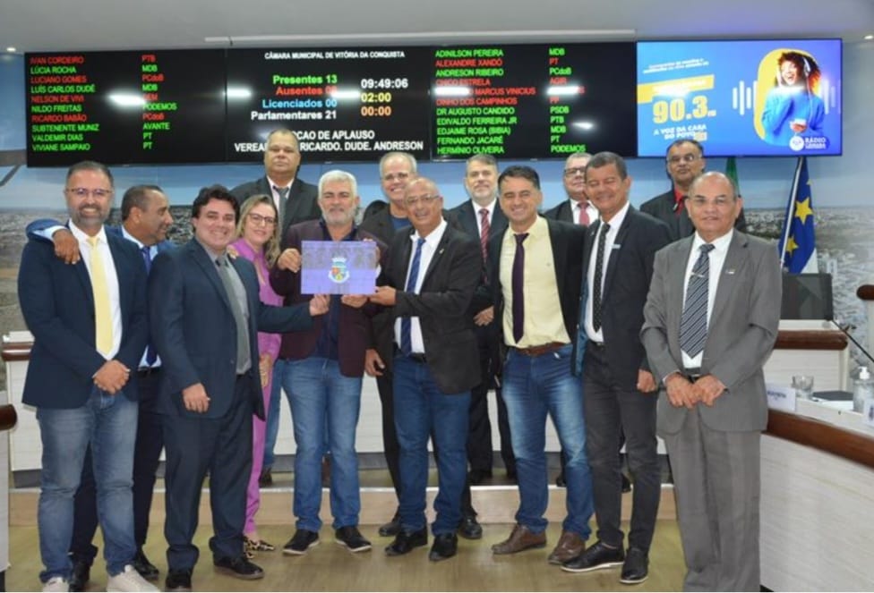 O empresário Edilvânio Alves da Silva (CEO da Arena Sashira), conhecido popularmente como “Seis Dedo”, recebeu uma homenagem na Câmara de Vereadores de Conquista, na manhã desta quarta-feira (06), durante a sessão.