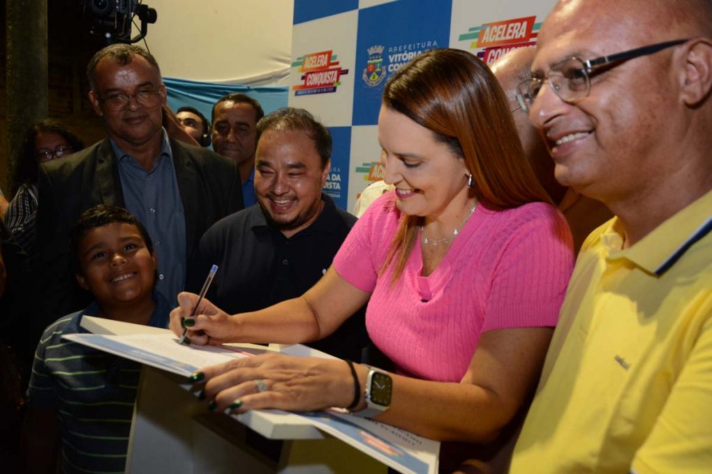 O Governo Municipal assinou, na noite desta quarta-feira (27), a Ordem de Serviço para início das obras de macrodrenagem, pavimentação asfáltica e sinalização do Loteamento Bateias 2, localizado no bairro Zabelê. E não havia lugar mais apropriado para o ato de assinatura do que o próprio local, com a presença da população que aguarda a tão sonhada obra, cuja execução pela Prefeitura de Vitória da Conquista, por meio do Acelera Conquista, já começa nesta quinta-feira (28).
