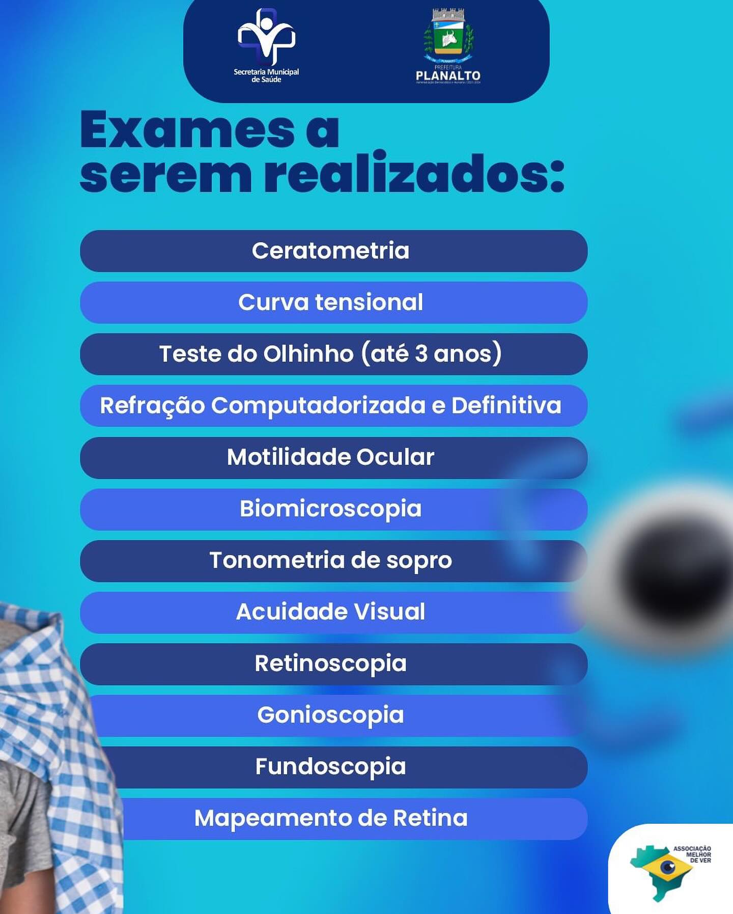 Participe da Semana da Saúde Visual, uma iniciativa da Secretaria Municipal de Saúde e da Prefeitura de Planalto, em parceria com a Associação Melhor de Ver.