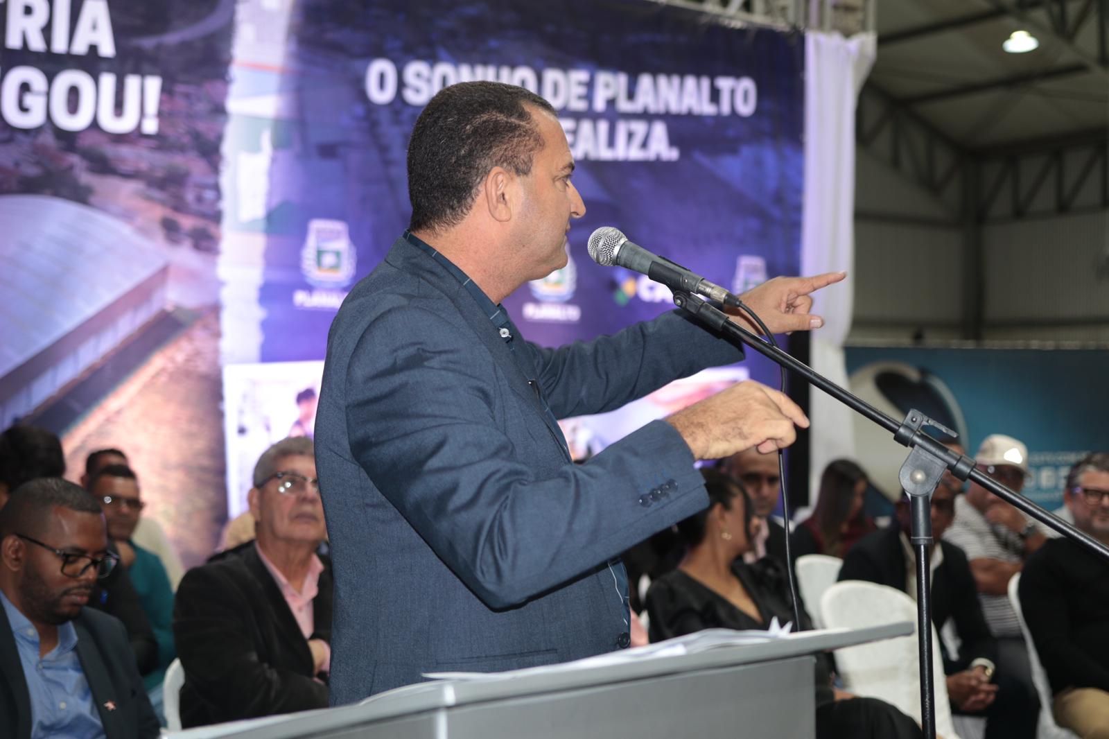 O deputado Zé Raimundo também marcou presença no ato de entrega do Galpão Municipal. Durante sua fala, o deputado parabenizou o prefeito Cloves Andrade pela iniciativa de construir o galpão com recursos próprios, destacando que a estrutura permitirá a instalação de uma unidade produtiva de manufatura e indústria, trazendo geração de emprego e renda para a região. Ele ressaltou que, juntamente com o Deputado Federal Waldenor, “estarão sempre apoiando Planalto”, e destacou a tendência da região com a duplicação da Rio Bahia, que se tornará um grande corredor de. O deputado também elogiou a iniciativa de Cloves em atrair a fábrica de embalagens para Planalto, afirmando que muitas outras coisas virão a partir dessa iniciativa. Por fim, parabenizou Cloves e reforçou que o mandato estará sempre ao lado dele, apoiando para que Planalto seja um exemplo para o Brasil, gerando emprego e renda, principalmente para a juventude.
