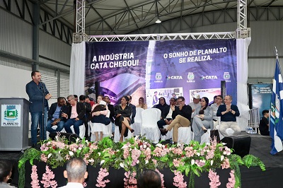 Ricardo começou sua fala destacando a trajetória de mais de 60 anos da CATA Embalagens, ressaltando sua natureza familiar e sua presença em todo o território nacional. Ele enfatizou que, a partir daquela data, o galpão não seria mais apenas uma estrutura física, mas sim uma fábrica composta por pessoas, e essas pessoas seriam os planaltenses.