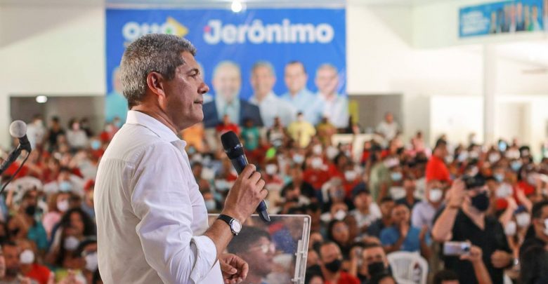 As pré-candidaturas do grupo apoiado por Jaques Wagner e Rui Costa foram lançadas em evento no dia 31 de março, em Salvador, com a presença do ex-presidente Lula. “As eleições deste ano têm dois lados bem definidos e os baianos sabem que somos do time da esperança e do trabalho, do time que vai caminhar junto com Lula para reconstruir o Brasil, colocar comida na mesa, garantir emprego e dignidade ao povo”, acrescentou Jerônimo. Ao falar sobre a dificuldade na sua infância, quando teve que mudar de um povoado na cidade de Aiquara para estudar, Jerônimo disse que as adversidades precisam ser transformadas em coragem para continuar trabalhando. “Essa situação tem que alimentar nossa indignação, não uma indignação ruim, perversa, ácida, mas uma indignação de querer fazer, de querer mudar, de não se conformar com as coisas. Essa indignação em minha vida foi transformada em esperança, em trabalho, em fé e é com isso que eu quero com o povo da Bahia dirigir nosso estado, puxando à frente a bandeira da esperança, do trabalho e da unidade.
