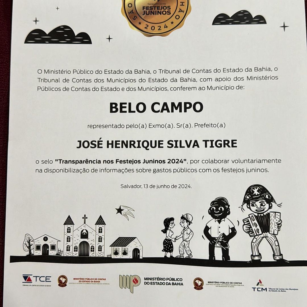 Belo Campo é contemplada com o Selo de Transparência dos Festejos Juninos
