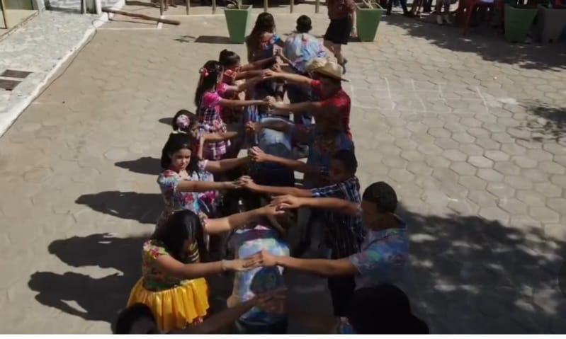 Momento de encontro entre comunidade escolar, familias e comunidade civil que juntos participam da cultura tradicional popular brasileira.