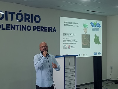 A equipe técnica do Consórcio Intermunicipal do Vale do Rio Gavião (Civalerg), representada pelos engenheiros agrônomos Juliana Prates e Pablo Rocha, participou do Seminário sobre o Programa de Fortalecimento da Mandiocultura, promovido pela Secretaria Municipal de Desenvolvimento e Expansão Econômica do município de Cândido Sales. Durante o evento, o professor Dr. Anselmo Eloy, do Laboratório de Melhoramento Vegetal da Universidade Estadual do Sudoeste da Bahia _ UESB, atualizou os agricultores e técnicos sobre o panorama atual da produção de mandioca no Território Sudoeste da Bahia.