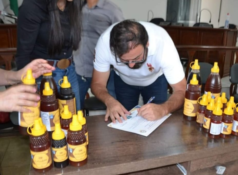 Nesta terça-feira, 1º de outubro, técnicos do Consórcio Intermunicipal do Vale do Rio Gavião (CIVALERG) participaram de uma cerimônia especial na Câmara de Vereadores, em Condeúba. para comemorar a concessão do Selo de Inspeção Municipal (S.I.M) à Associação de Apicultores do município (APIC). O evento contou com a presença do prefeito Silvan Baleeiro, de sua equipe de governo e de técnicos do consórcio, destacando a relevância desse marco para a comunidade local.