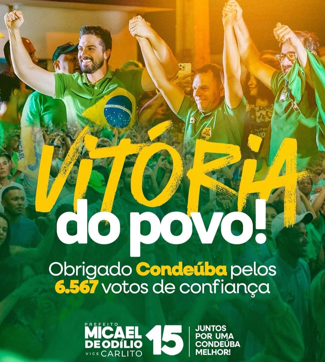 Aos 32 anos, Micael de Odílio foi eleito prefeito de Condeúba no último domingo, 6 de outubro, com uma expressiva votação de 6.567 votos, o que corresponde a 55,97% do total. Em um discurso emocionado, Micael expressou sua gratidão à população de Condeúba: “Hoje, só tenho uma palavra: GRATIDÃO. Mesmo diante de tantos ataques, fake news e tentativas de nos derrubar, o povo de Condeúba ficou ao nosso lado e mostrou que a verdade sempre prevalece. Cada um desses 6.567 votos representa a força, a coragem e o desejo de ver nossa cidade seguir em frente, com respeito e dignidade. Essa vitória não é só minha, é de cada condeubense que sonha com uma cidade melhor. Vocês acreditaram no nosso projeto, resistiram às mentiras, e juntos mostramos que a esperança é mais forte que o medo. Vamos seguir juntos, com muito trabalho, dedicação e amor por Condeúba. O futuro começa agora! Muito obrigado a todos que acreditaram e caminharam ao nosso lado. Essa vitória é nossa!” Ao seu lado, o vice-prefeito eleito é Carlito, do PP, de 47 anos.