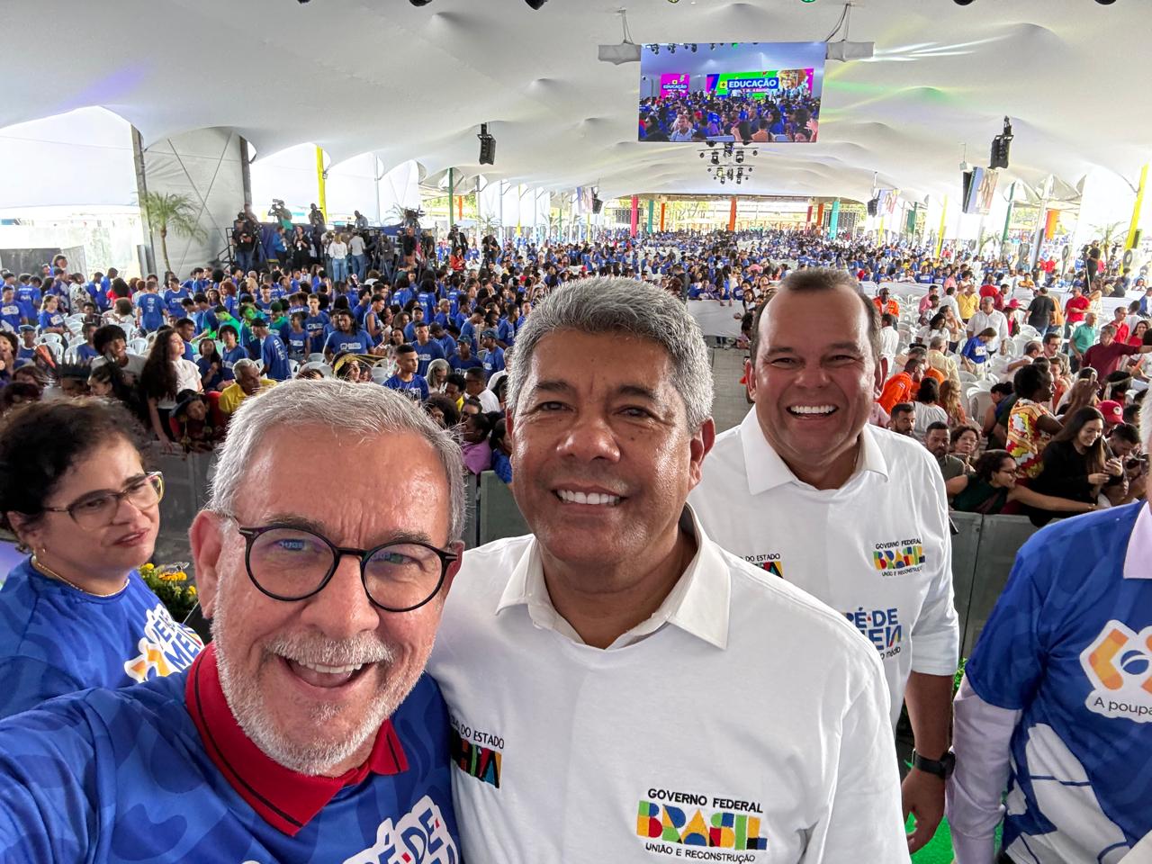 Ao lado do presidente Lula, do governador Jerônimo Rodrigues, do ministro da Educação, Camilo Santana e da secretária estadual da Educação, Rowena Brito, o deputado federal Waldenor Pereira (PT) participou do anúncio da expansão do Programa Pé-de-Meia na Bahia, na manhã desta quinta-feira (17). O anúncio aconteceu no Parque de Exposições da Bahia, em Salvador, durante o “Festival Pé-de-Meia e Bolsa Presença”, com a participação de 10 mil estudantes, segundo a dados oficiais do governo.