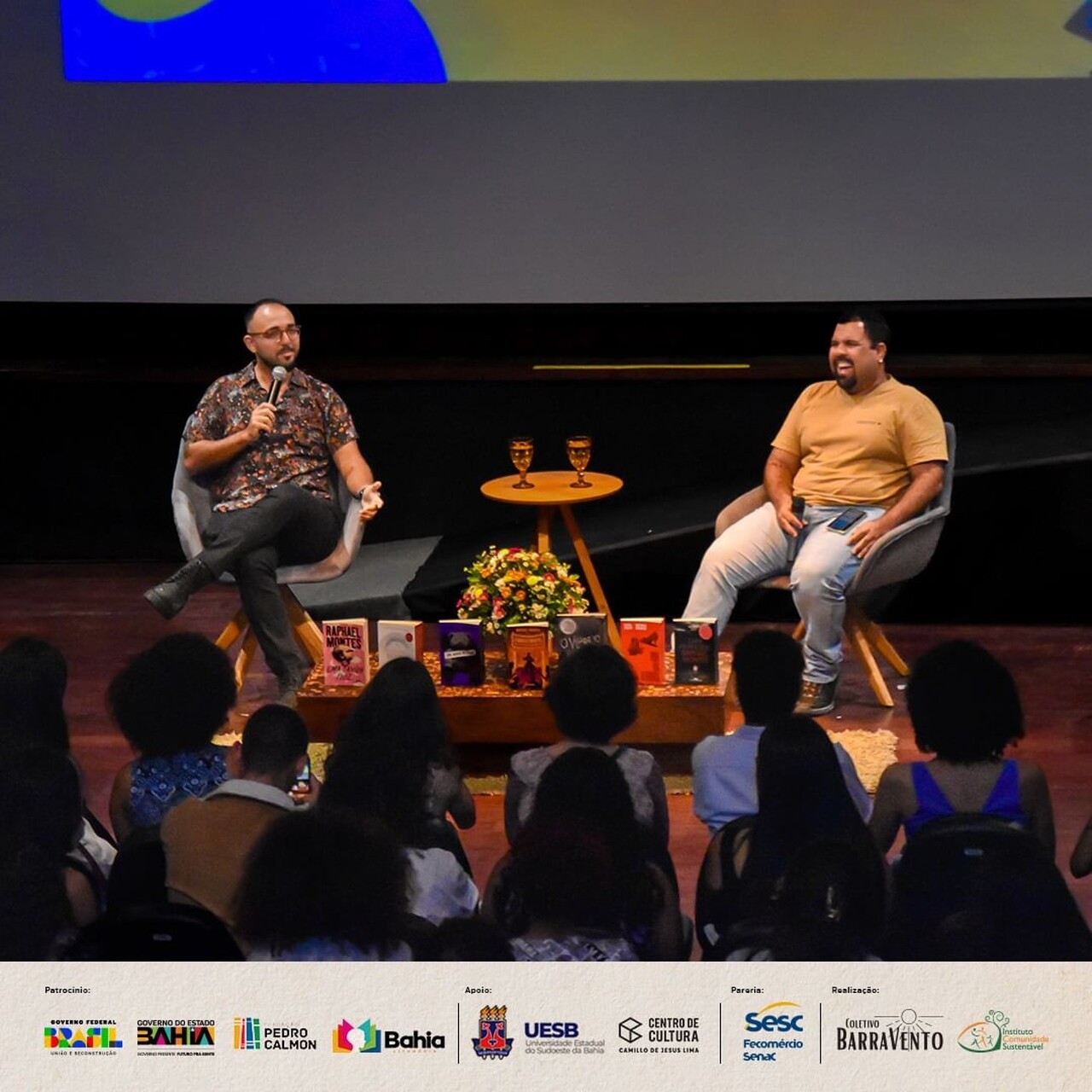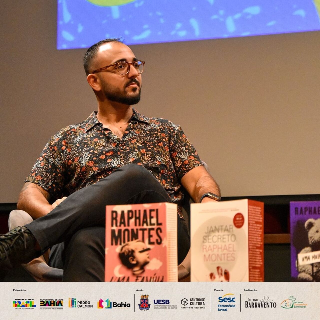 O público da FliConquista recebeu com muito carinho o escritor e roteirista brasileiro Raphael Montes para uma conversa, com mediação de primeiraorelha, que trouxe fãs apaixonados pelas narrativas envolventes de suspense e terror de várias cidades da Bahia.