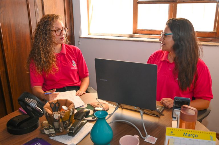 Logo na entrada da secretaria, guardas municipais estão de prontidão para garantir a segurança da mulher e, se necessário for, acompanhar a vítima ou equipe para um serviço de proteção. Já na recepção, a servidora Luana Jéssica Santos e a estagiária Izania Fernandes dão as boas-vindas. A depender da situação que a mulher se encontra, ela recebe atendimento especializado e orientação sobre seus direitos, capacitação profissional e assessoria empresarial ou é articulado o acesso às políticas transversais (Saúde, Educação e Assistência Social).