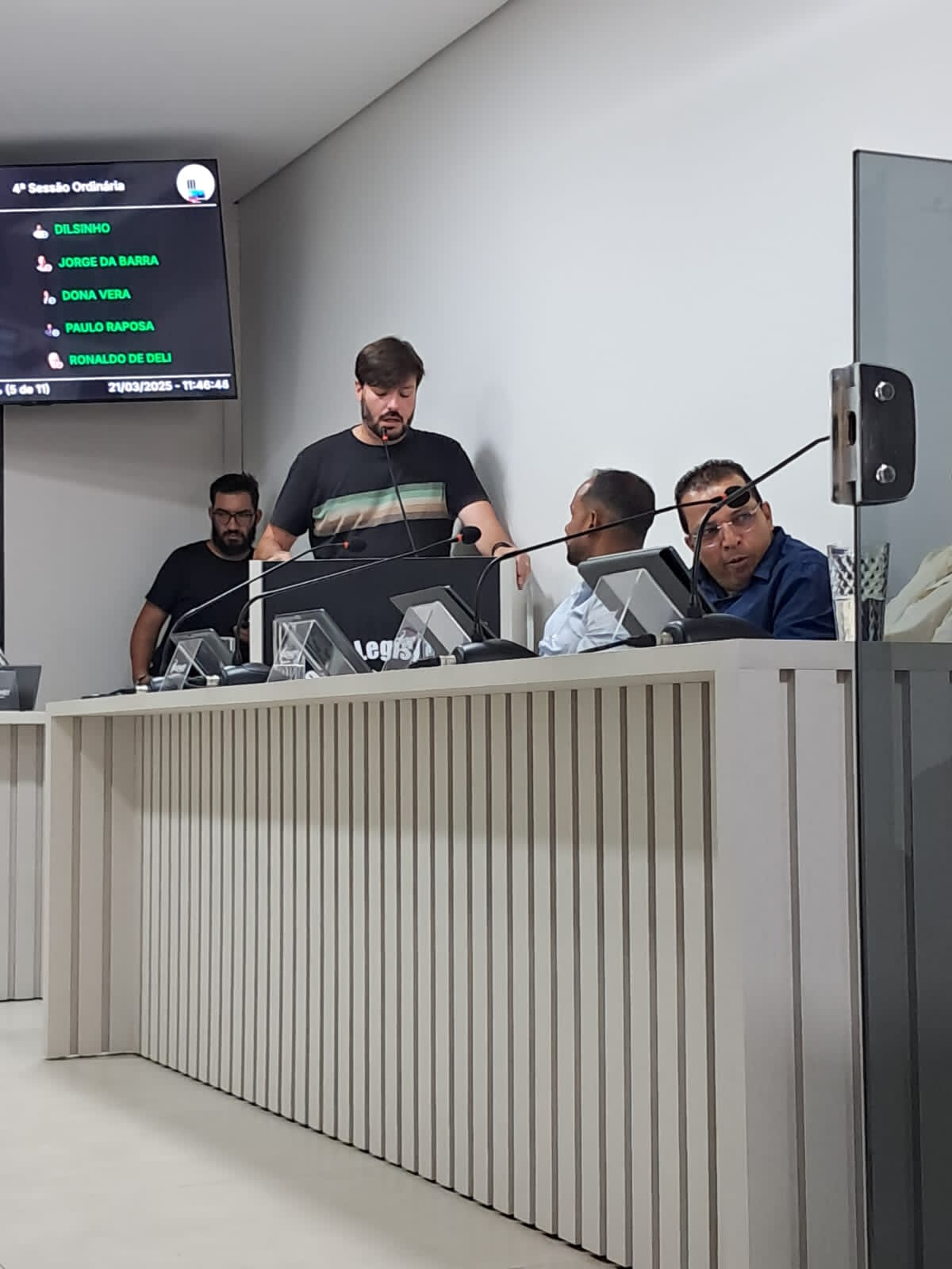 Durante a sessão, foram votados projetos importantes para o desenvolvimento do município. Todos os vereadores estiveram presentes: Sérgio Cavalcante, presidente da Câmara; Maria Verônica de Sá; Dilson Pinheiro dos Santos; Ivalnei Rocha Martins; Jorge Alves Costa; Leonardo Araújo Carvalho; Merques José Alves Rocha; Paulo Lima; Renata de Araújo Sousa; Ronaldo Pales Rocha e Carlos Alberto Batista Rocha.