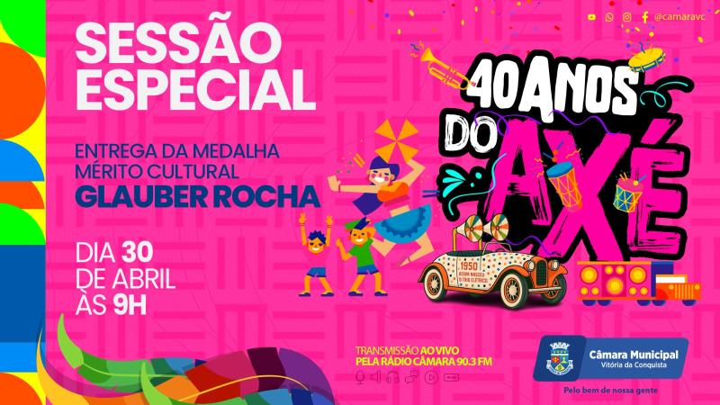 A Câmara Municipal de Vitória da Conquista promove nesta quarta-feira (30) uma sessão solene especial em homenagem aos 40 anos da Axé Music, gênero musical que se consolidou como um dos maiores símbolos culturais do Brasil.