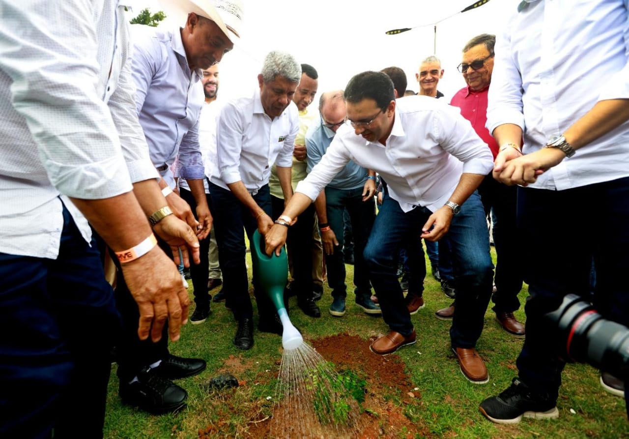 Ainda no município, Jerônimo fez o plantio simbólico de uma muda de Pau-Brasil em frente ao estádio municipal, em homenagem ao Mês do Meio Ambiente.