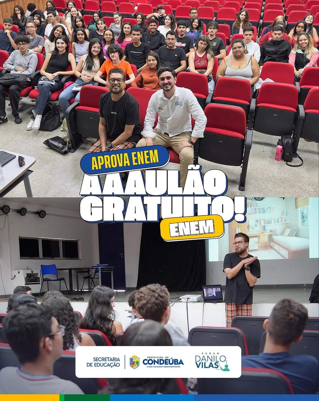 Na manhã do último sábado, 02 de agosto, aconteceu a primeira aula do Projeto Aprova ENEM, uma iniciativa da Prefeitura de Condeúba, por meio da Secretaria Municipal de Educação, em parceria com o Curso Danilo Vilas.