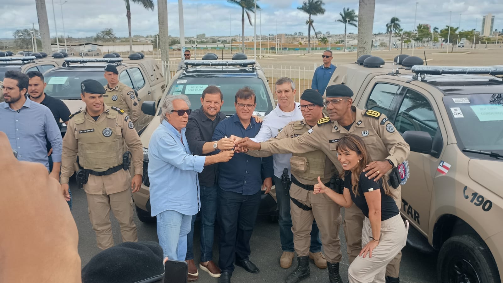 O vice-prefeito Rodolfo de Almeida Lopes, acompanhado pelo ex-prefeito José Henrique Tigre, esteve presente na cerimônia de entrega realizada em Vitória da Conquista. Rodolfo representou o Prefeito Neto Fidelis que estava cumprindo outra agenda. O veículo foi oficialmente entregue pelo subcomandante-geral da Polícia Militar, coronel Lopes, e pelo secretário de Segurança Pública da Bahia, Marcelo Werner.