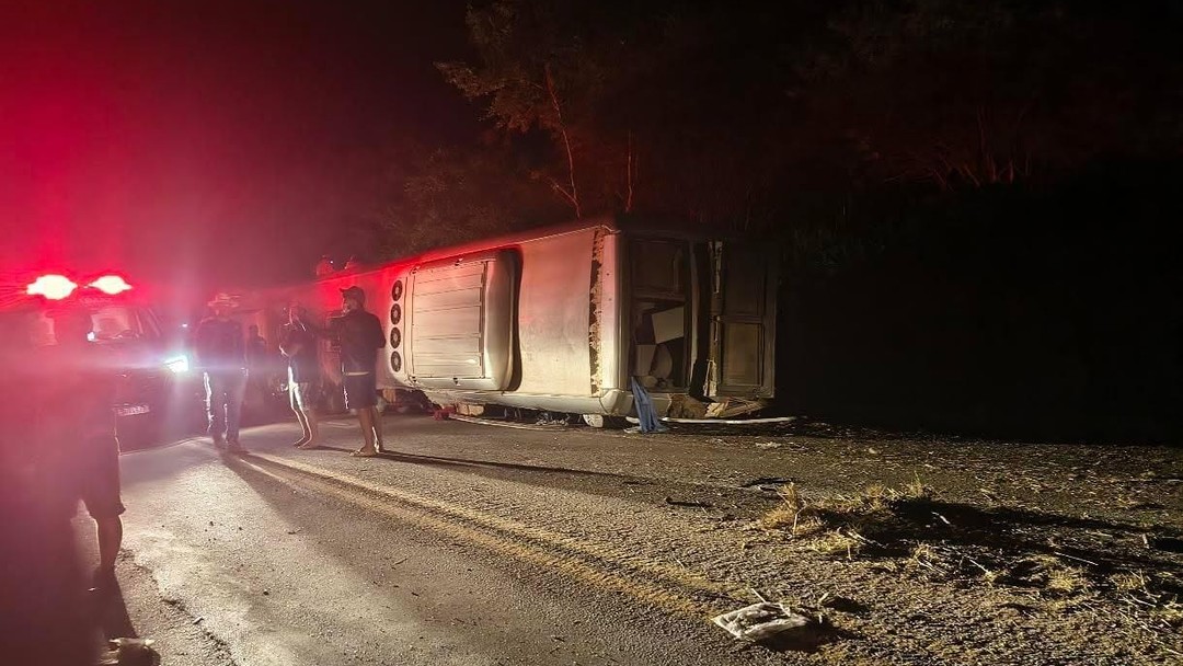 O ônibus que tombou na BR-423, entre os municípios de Saloá e Paranatama, na noite da sexta-feira (17), no Agreste de Pernambuco, acessou a contramão e atingiu rochas que estavam às margens da rodovia. Em seguida, o condutor do veículo conseguiu voltar para o sentido correto e colidiu novamente em um barranco de areia antes de tombar.