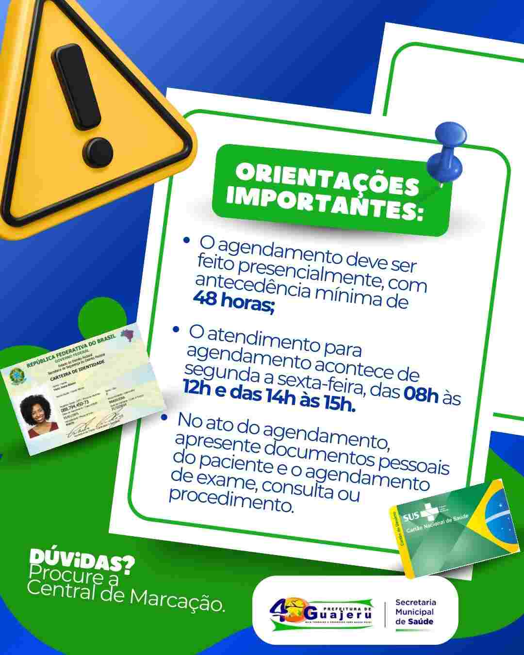 Com a mudança, todos os agendamentos passam a ser centralizados exclusivamente na Central de Marcação, com o objetivo de organizar o atendimento e garantir mais eficiência no serviço prestado aos usuários do sistema de saúde.