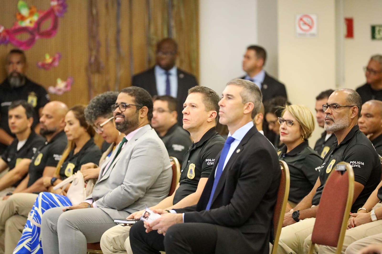 Participam do evento o secretário da Segurança Pública, Marcelo Werner; o secretário de Justiça e Direitos Humanos, Felipe Freitas; a secretária de Promoção da Igualdade Racial e dos Povos e Comunidades Tradicionais, Ângela Guimarães; o delegado-geral da Polícia Civil, André Viana; além de representantes da Secretaria de Políticas para as Mulheres (SPM), diretores de departamentos da Polícia Civil, integrantes das forças de segurança e servidores.