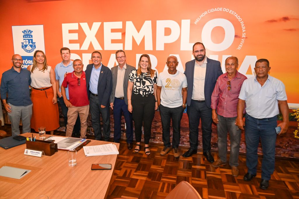 A prefeita Sheila Lemos recepcionou o presidente do Sincavir, Nilson Pinheiro, e membros da diretoria do sindicato, acompanhada dos secretários da Casa Civil, Ivanildo da Silva, de Transformação Pública, Edimário Freitas, e de Relações Institucionais, Kalilly Lemos.